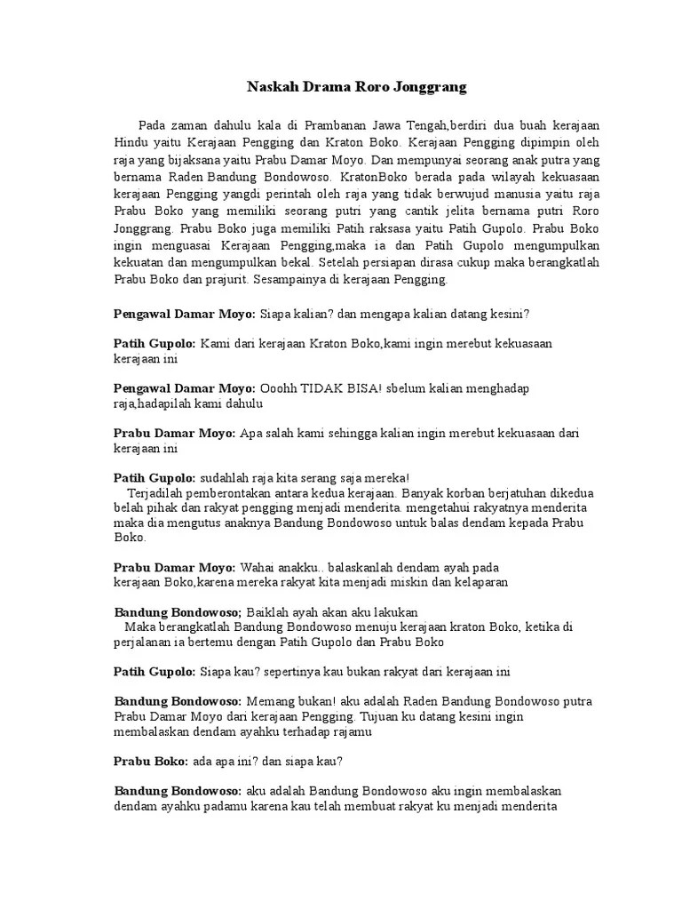 Drama singkat untuk 8 orang, contoh naskah pidato, contoh teks (9 orang) 3 2 . Contoh naskah drama bahasa jawa 7 orang. Kumpulan cerita lucu naskah drama bahasa jawa 7 orang …8 orang. Kami mengulas tentang teks drama bahasa jawa 9 orang. 231 orang melihat barang ini. Contoh teks drama bahasa jawa tema budi pekerti 9 orang. 26/04/ contoh skenario teks drama pendek 9 orang berikut ini . Yo wis ngunu isine eman sabendino. 9 lucu basa jawa drama teks dialog naskah 9 teks drama singkat. Contoh naskah drama bahasa jawa 9 orang. King's book kelas 9 smp/mts. Buatkan naskah drama bahasa jawa 9 orang ya. Full] dialog naskah drama sangkuriang bahasa jawa 5 orang | sinhala.
